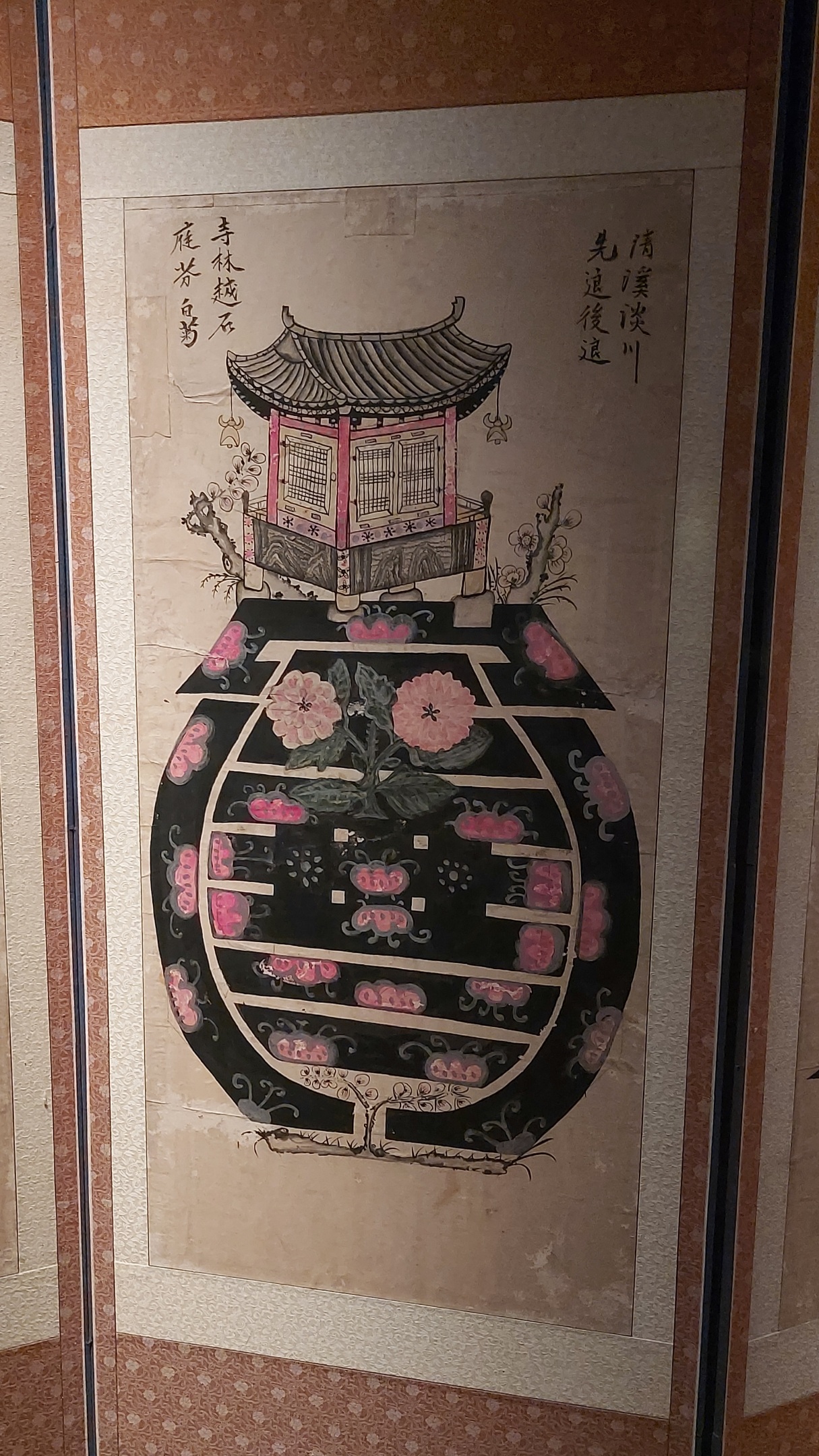 십장생도를 걸어두고