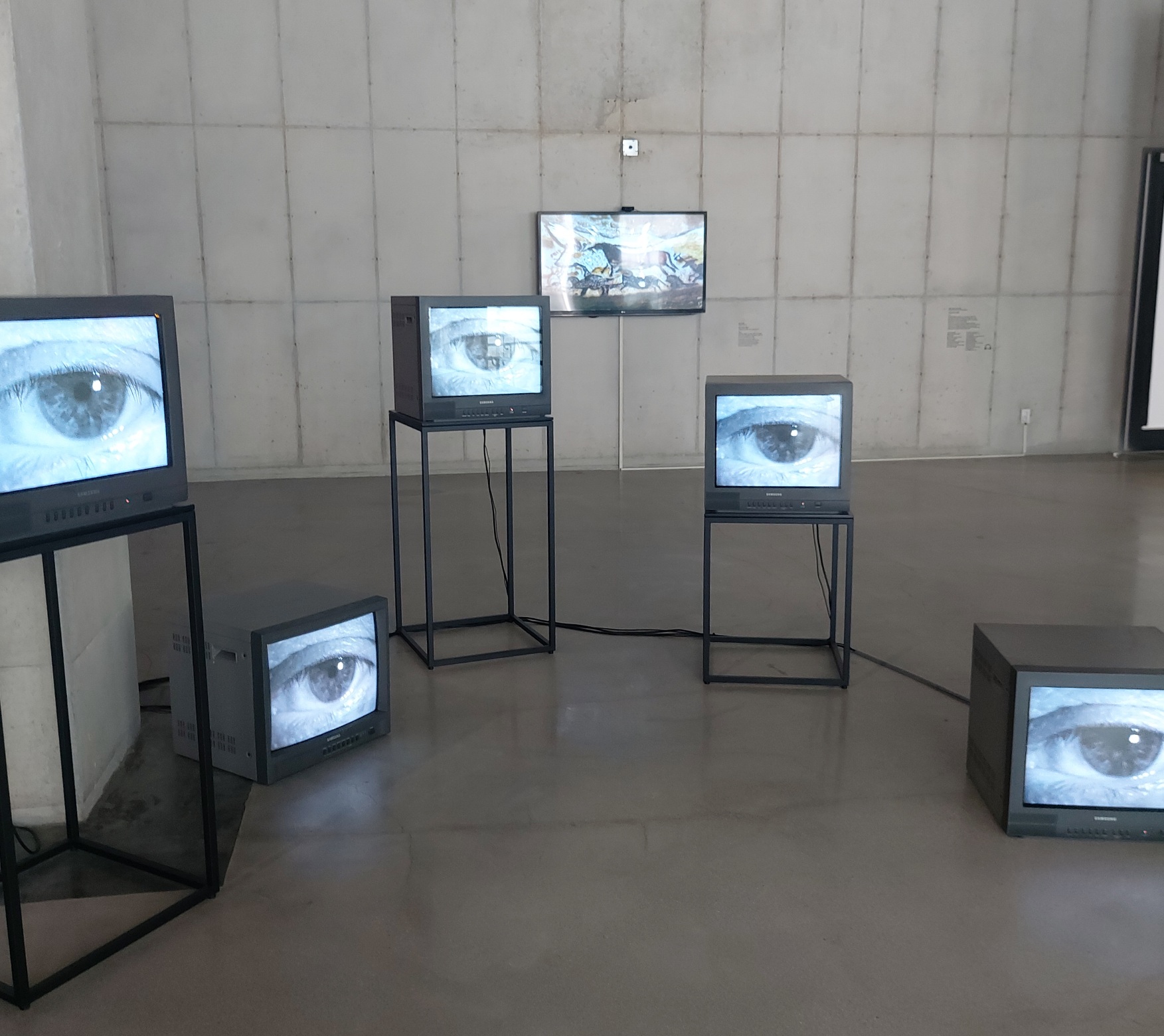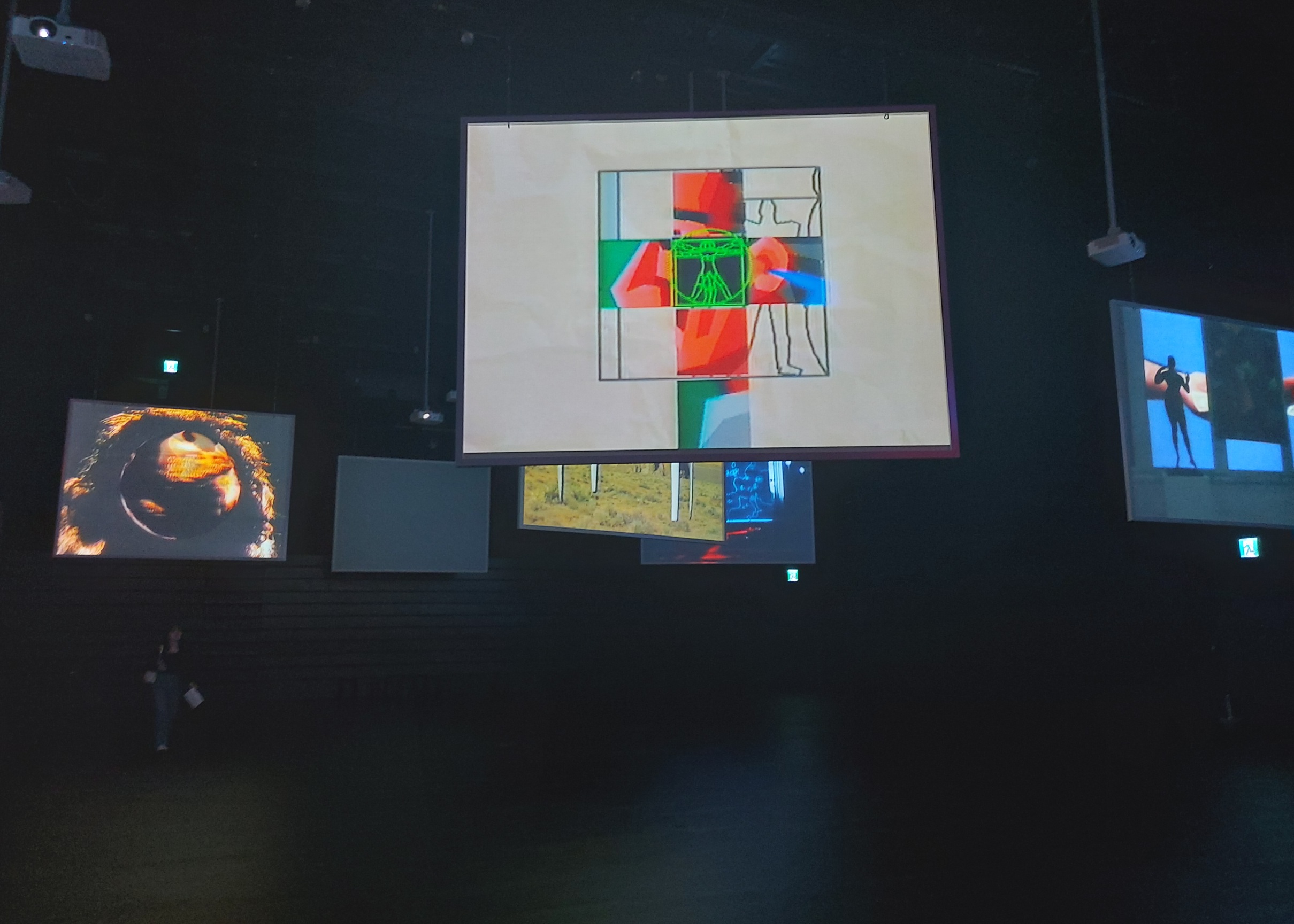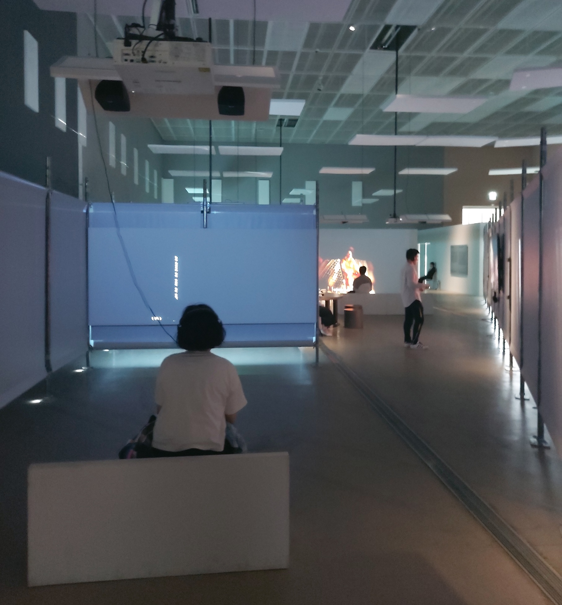 넓은 곳에 스크린들을 매달아놓은 전시였다