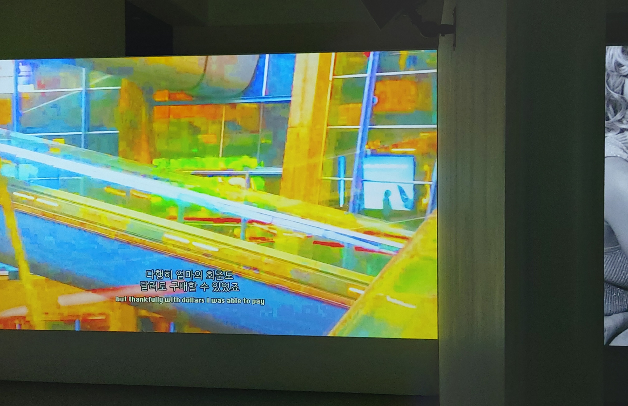 널찍한 스크린을 걸어둔 전시였다