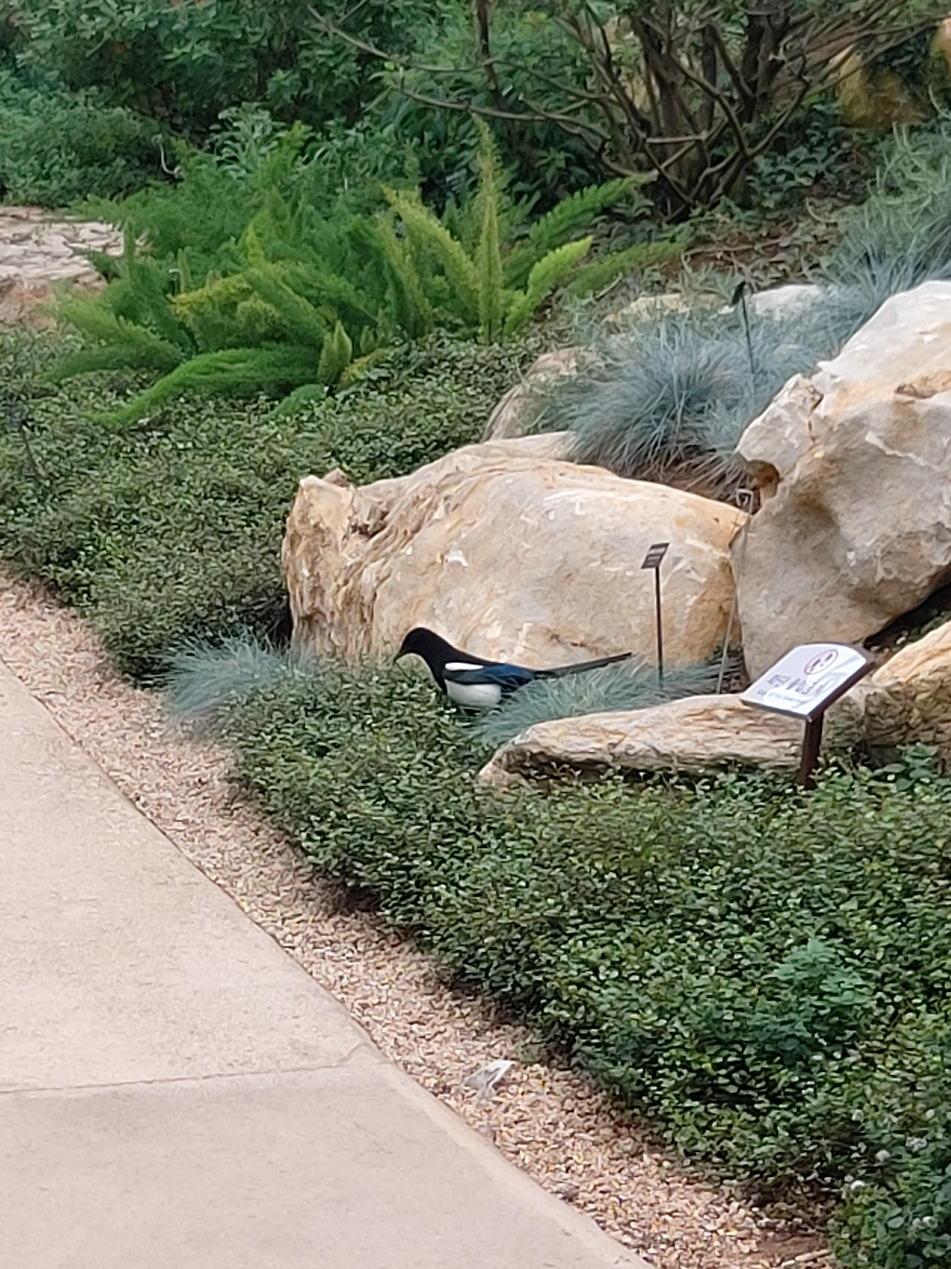 어디로 들어왔는지 까치가 돌아다니고 있었다