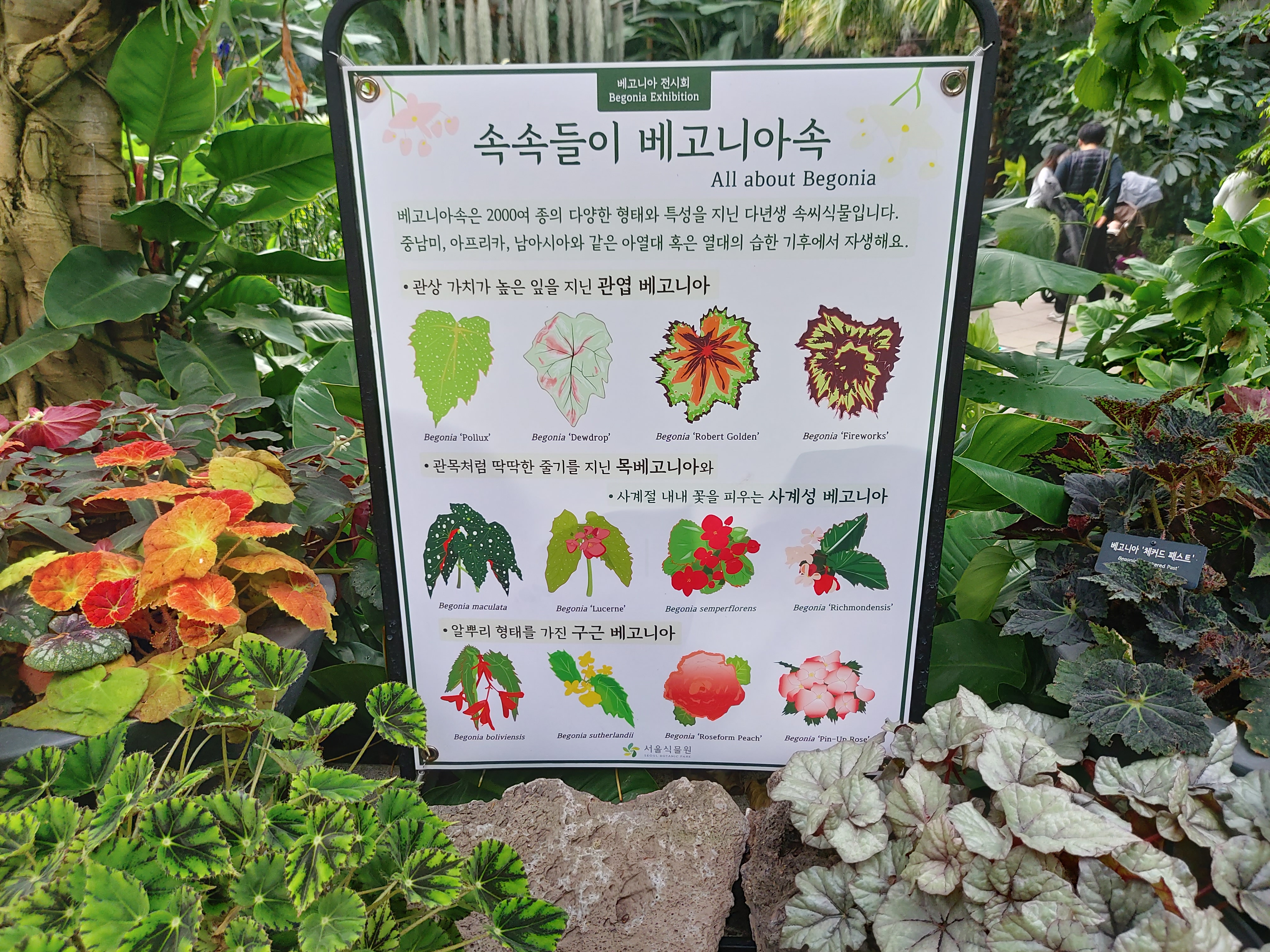 여러 베고니아들을 심어놓고 설명을 달아놓았다