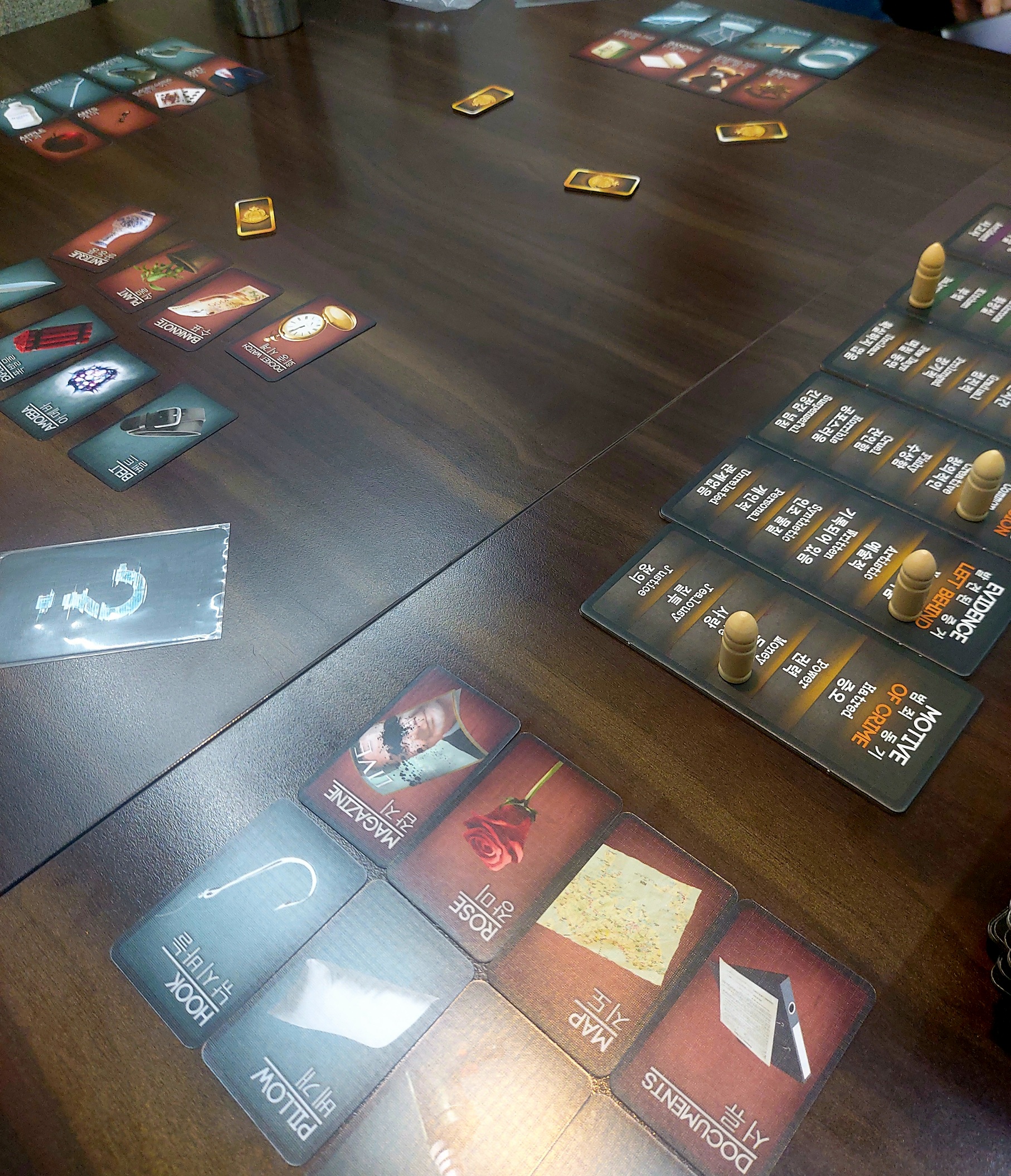흉기와 단서 등등의 카드를 나누어 받고