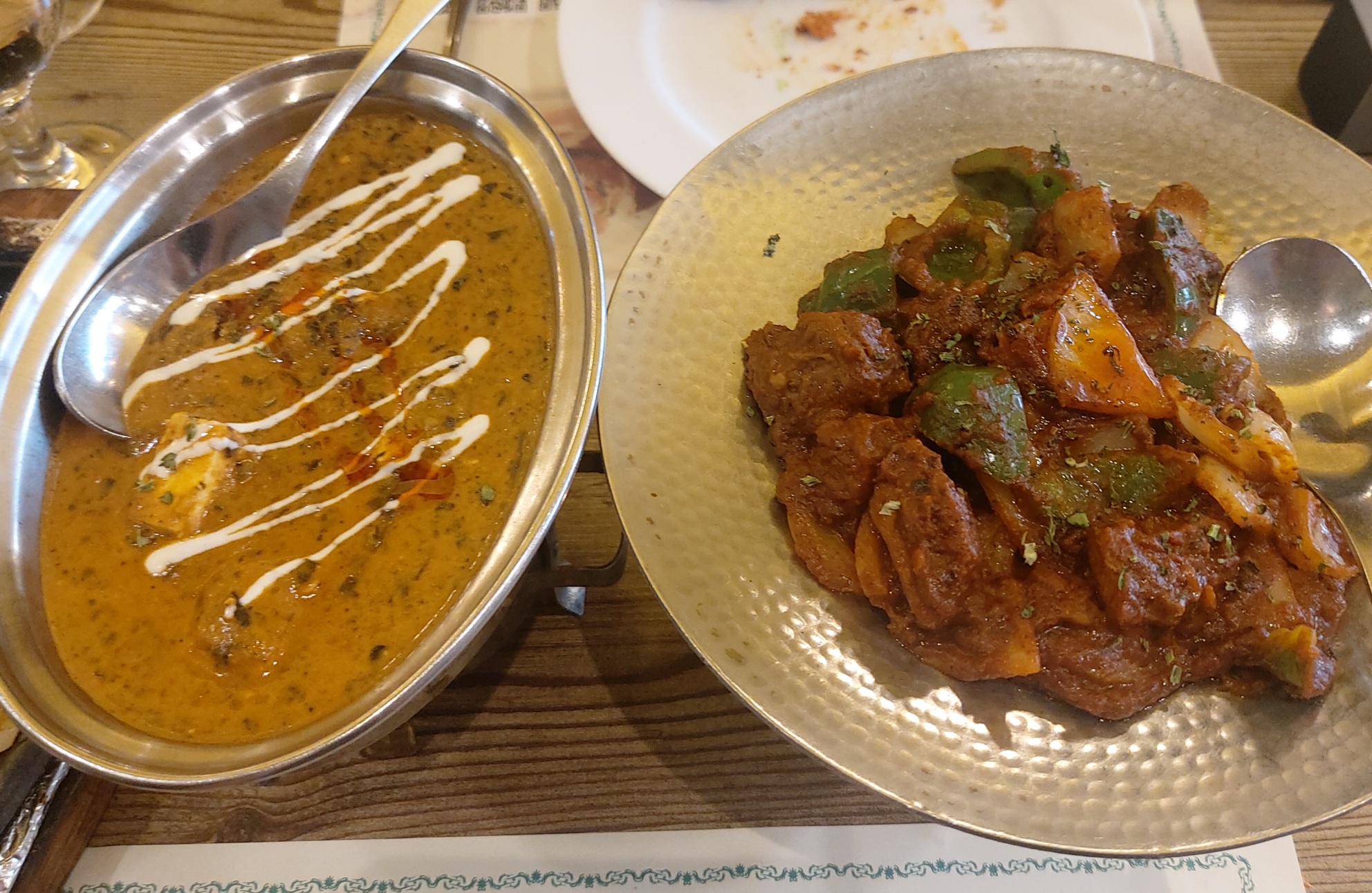 이름이 약간 헷갈리는데 시금치 치즈 커리 양고기 커리 그리고 닭고기 커리다