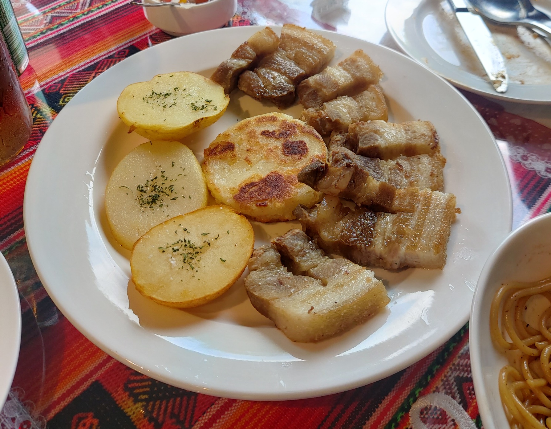 고기+감자+뭔가 노릇한 반죽