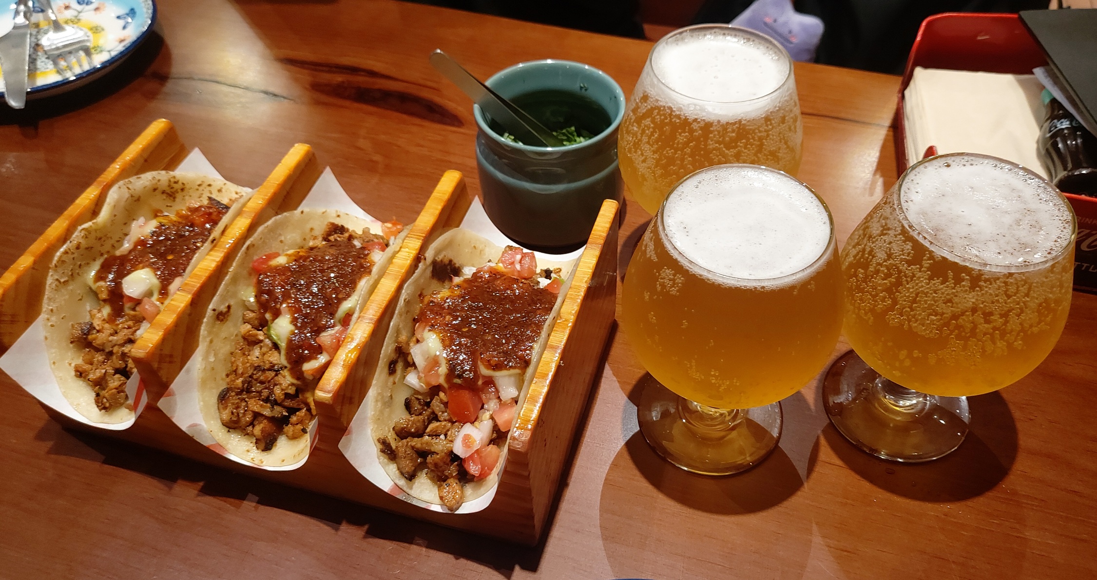 우선 돼지고기 타코에 맥주부터!
