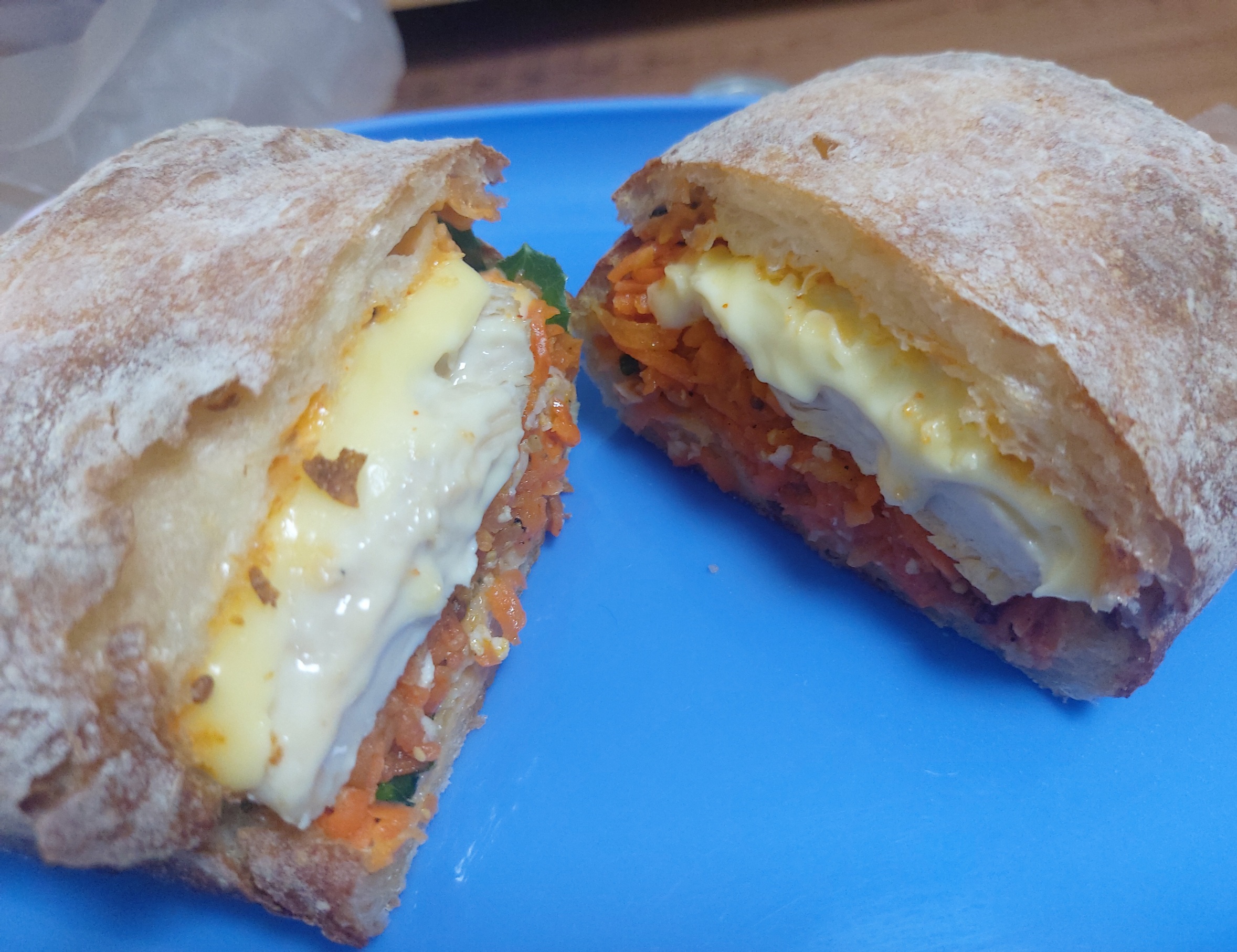 저녁으로는 친구가 주문해준 닭가슴살과 당근 라페 치아바타 샌드위치