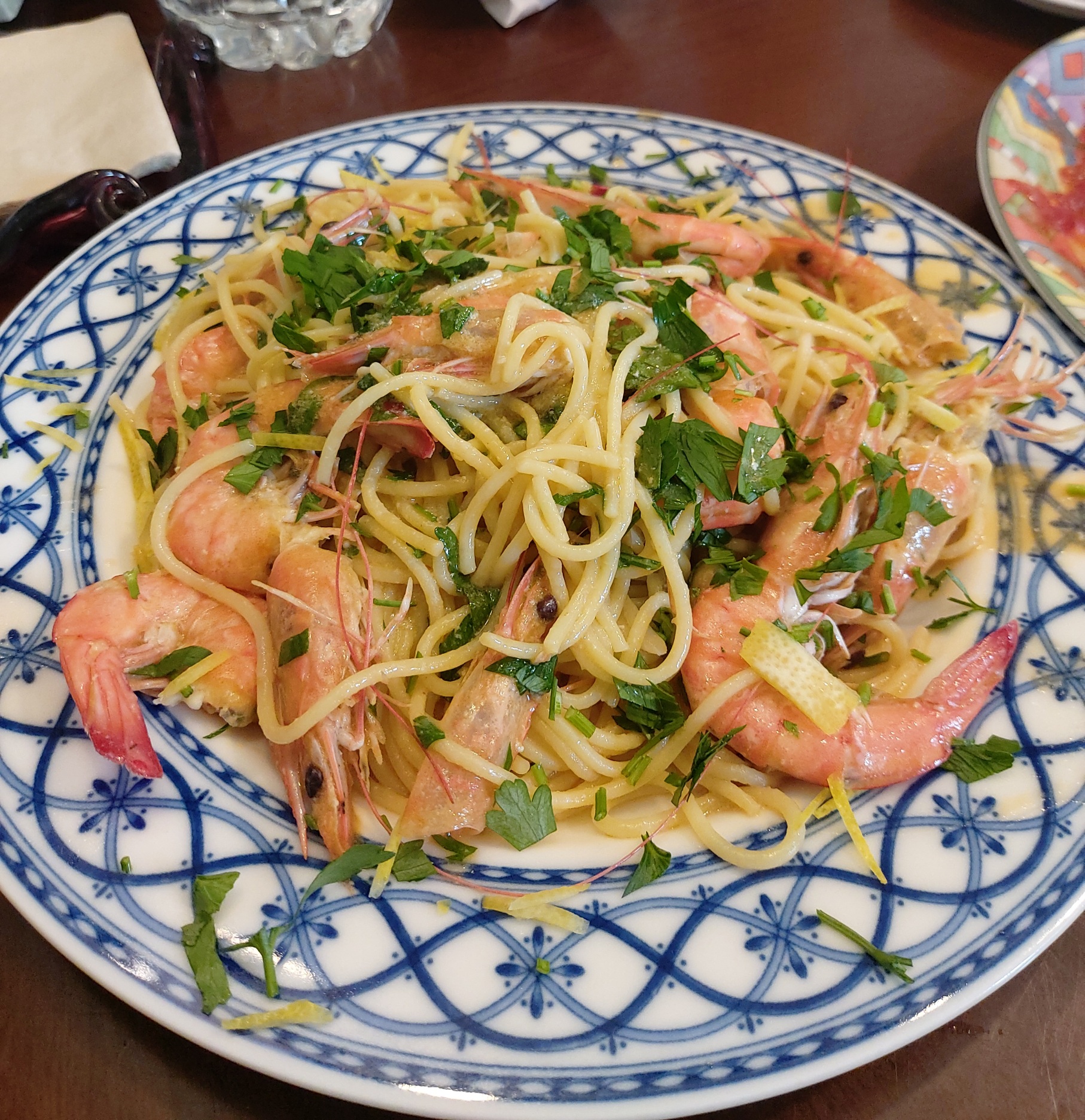 레몬 버터 딜 파스타에 새우를 넣은 건데
