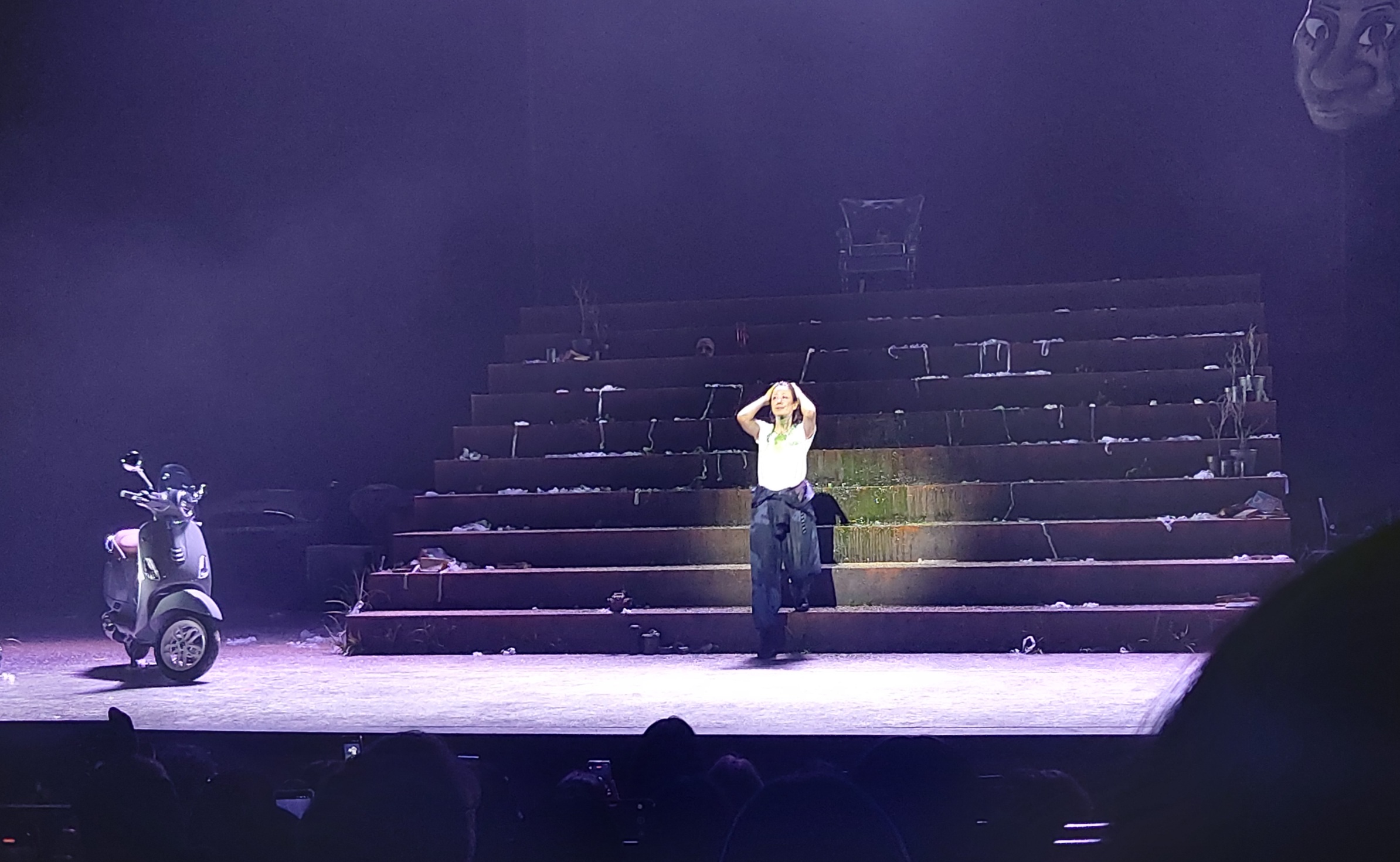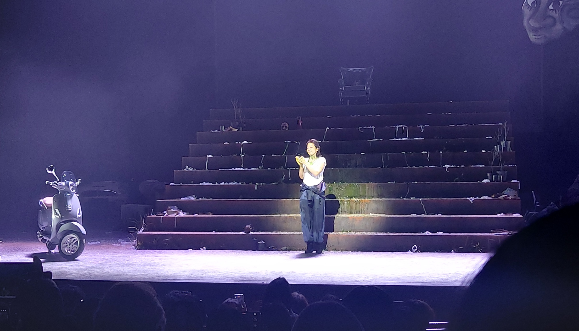 처음은 무대에 불이 꺼지고, 배우 전혜진은 왼쪽 통로를 따라 나타난다