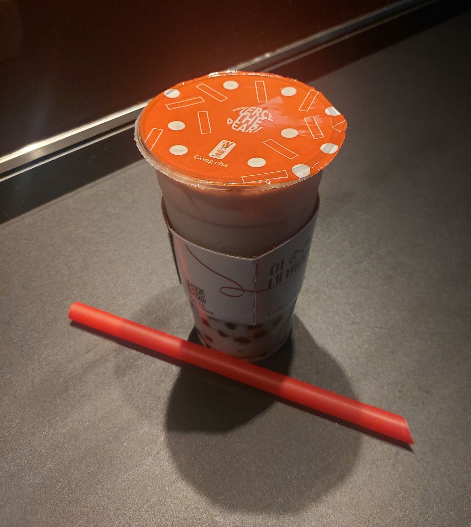 국보 티켓으로 할인 받아서 타로 밀크티 (펄) 를 할인받아 사서 영화관에 들어갈 수 있었다